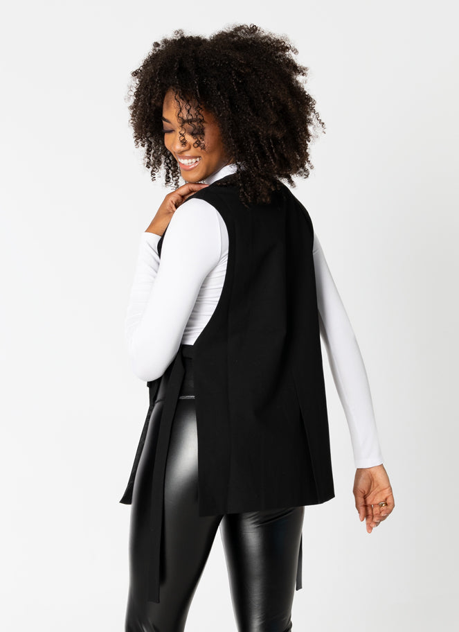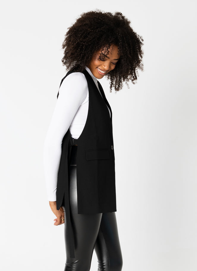 A super stylish one button vest that features open sides. Pair over any bamboo top.